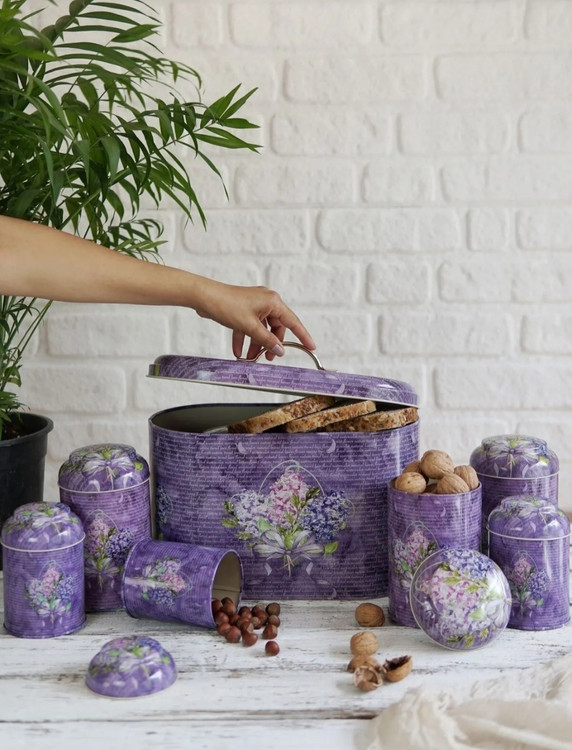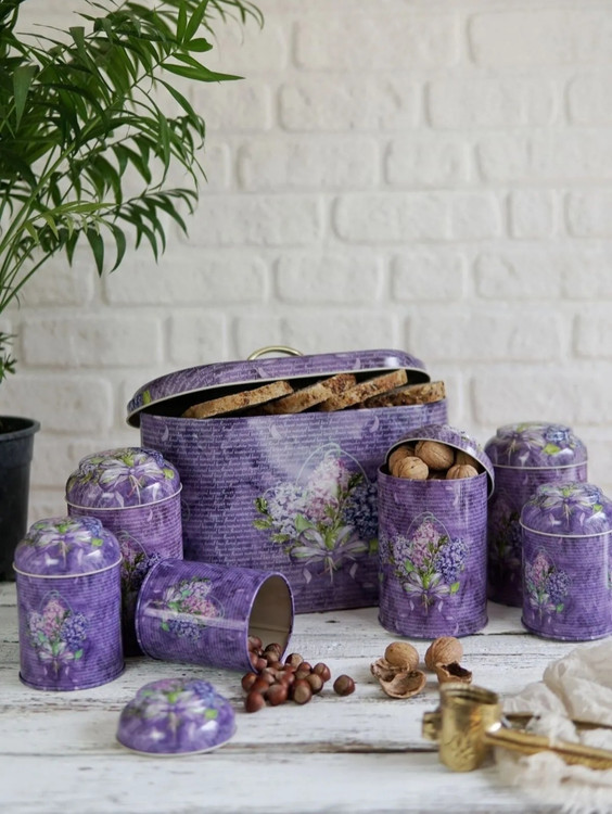 ست جانانی و بانکه فلزی ترکیه ۷‌پارچه طرح گلهای بنفش Evle