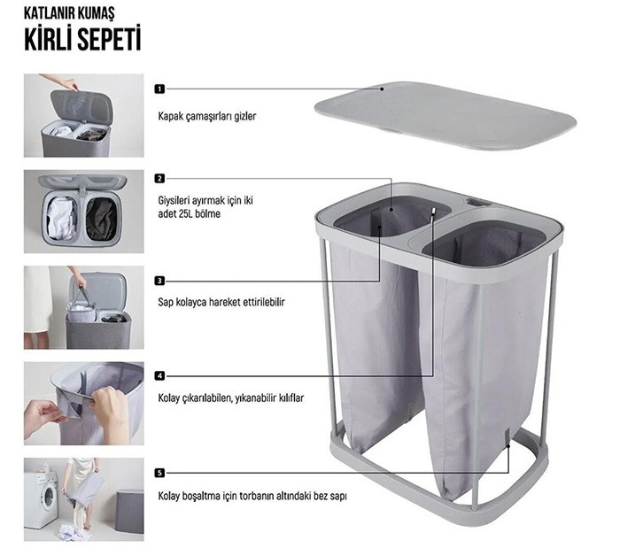 طراحی محفظه دوتایی: وجود دو محفظه مجزا به شما کمک می کند لباس های خود را به راحتی برحسب رنگ یا نوع شستشو جدا کنید.