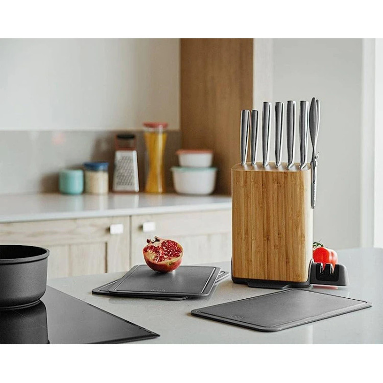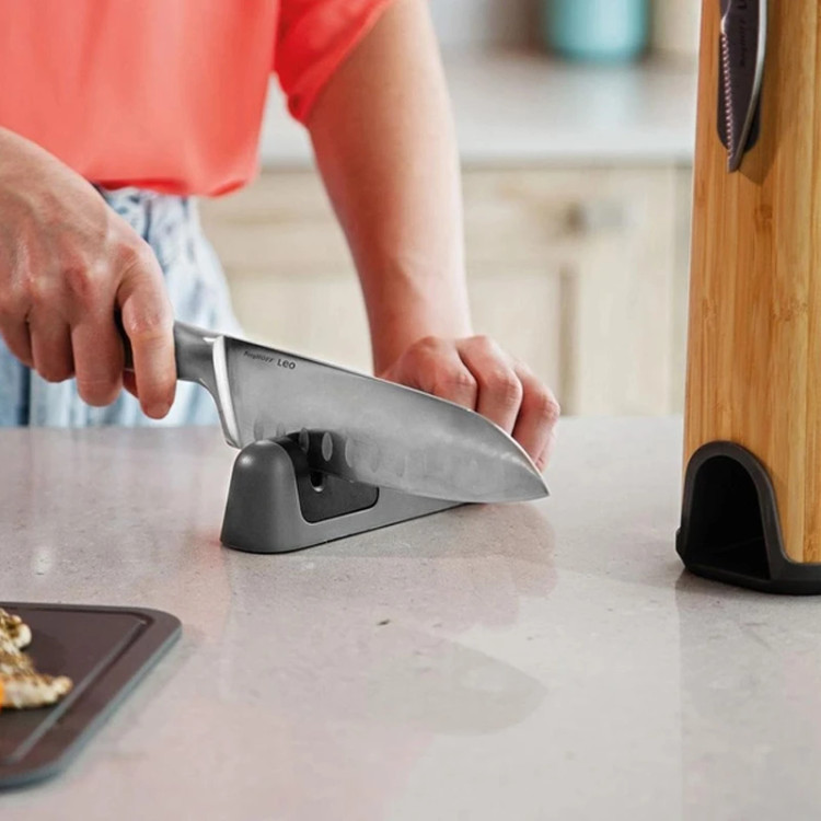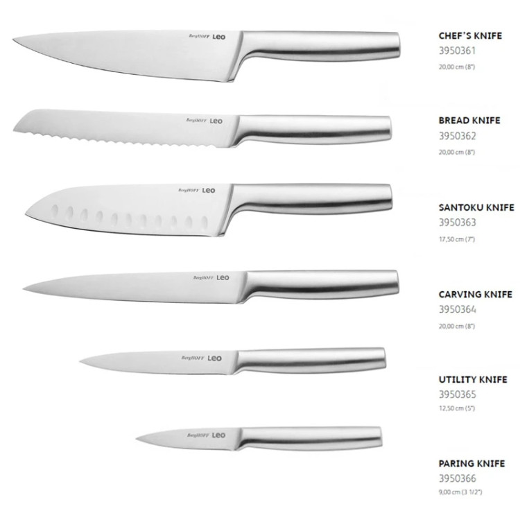 برگهف برند معروف بلژیکی در محصولات آشپزخانه می باشد که ده ها سال تجربه عرضه کالای پریمیوم را در سابقه خود دارد. سری LEO از جدیدترین سری های برگهف است که طراحی مینیمال و مدرن آن برای استایل زندگی امروزی فوق العاده است. مدل لگاسی از کاملترین ست های بازار است که از 6 عدد چاقوی استیل ، 3 تخته خرد کنی ، یک چاقو تیز کن و استند تشکیل شده است. طول تیغه چاقوها که از استیل پیشرفته میباشد سایز 9 - 12 -17 سانتی متر بوده و 3 چاقوی سرآشپزی،برشکاری و دندانه دار 20 سانتیمتری را نیز شامل میشود. چاقو تیز کن با طراحی جالبی در دل استند قرار گرفته است و با 2 شیار میتواند چاقو های مختلف را تیز نماید. 3 عدد تخته کاربردی در پشت استند بصورت عمودی قرار میگیرند. استند این محصول شاهکار طراحی بوده و بصورت مگنت نیز میتوان قیچی یا چاقوی دیگر را نیز به آن متصل کرد. این محصول یکی از پیشرفته ترین ست های چاقو بوده و کیفیت بالای تولید و متریال در نگاه اول نشاندهنده قدرت برگهف در تولید محصولات لوکس با طول عمر بالا می باشد.