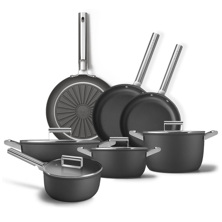 سرویس قابلمه ایتالیایی اسمگ ۱۱ پارچه رنگ مشکی smeg
