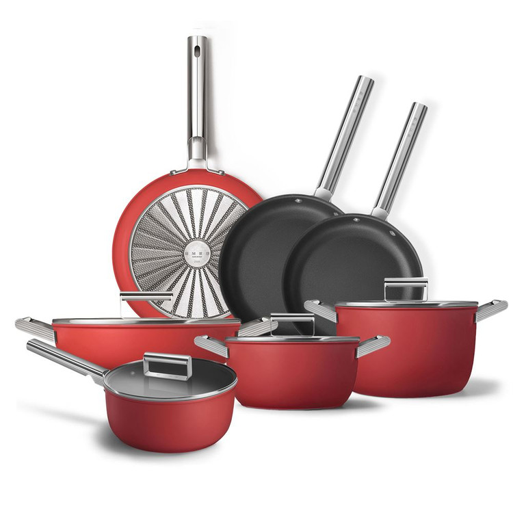 سرویس قابلمه ایتالیایی اسمگ ۱۱ پارچه رنگ قرمز smeg