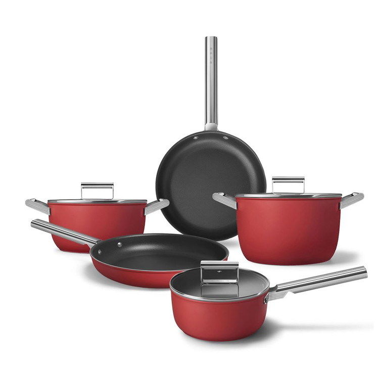 سرویس قابلمه ایتالیایی اسمگ ۸ پارچه رنگ قرمز smeg
